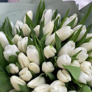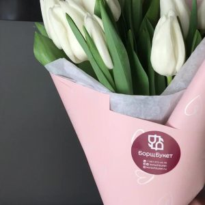 Букет белых тюльпанов (19 шт) в стильном оформлении «Весеннее настроение»